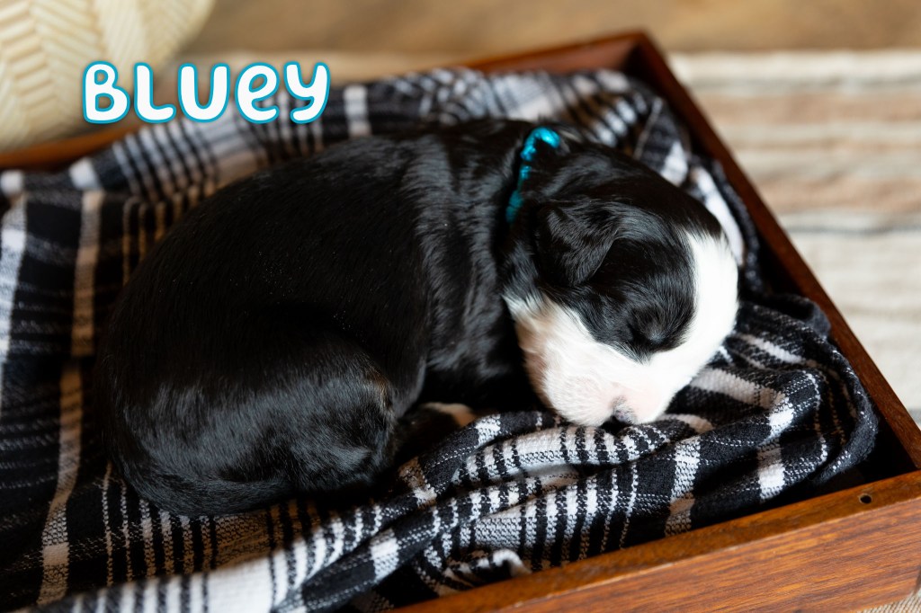 Our 6 year old (and the rest of the house too!) loves the cartoon Bluey. So, it’s only fitting to give this litter names from the show. They are identified by color of their collar so you can easily pick out which one you want to take home!